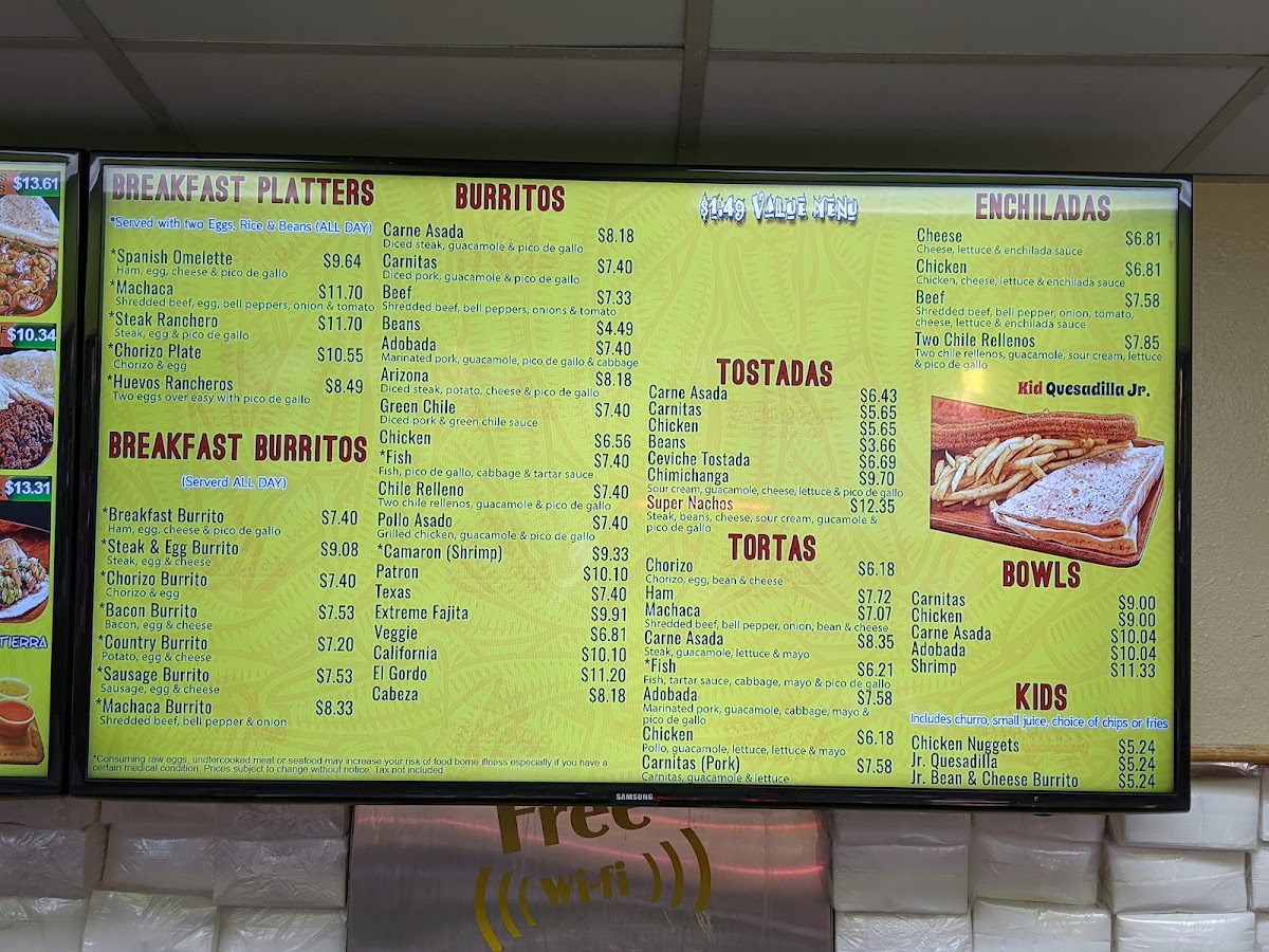 Drink selections complement the flavorful fare perfectly, with options ranging from Mexican bottled Coke to refreshing horchata espresso iced coffee. Whether you opt for a XL Fountain Drink or a Mexican Juice, you’ll find a beverage that perfectly pairs with your meal, enhancing the overall dining experience.